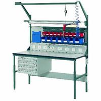 Ergonomic adjustable worktable with JTC holder,adjustable shelf,overhead rail,add table+bins(EW2.6 Workstation)