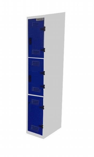 Diecast hinges support the doors which are punched with louvres for ventilation. Each compartment is fitted with a shelf level.This locker is of a riveted construction, no welding to compromise the zinc coated material, powder coating is done for additional protection and aestehetics.