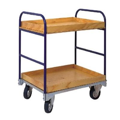 T340 trolley with two wooden trays. Manufactured from 3mm quality steel and 20mm tubing. Epoxy coated in RAL 5005 navy blue.